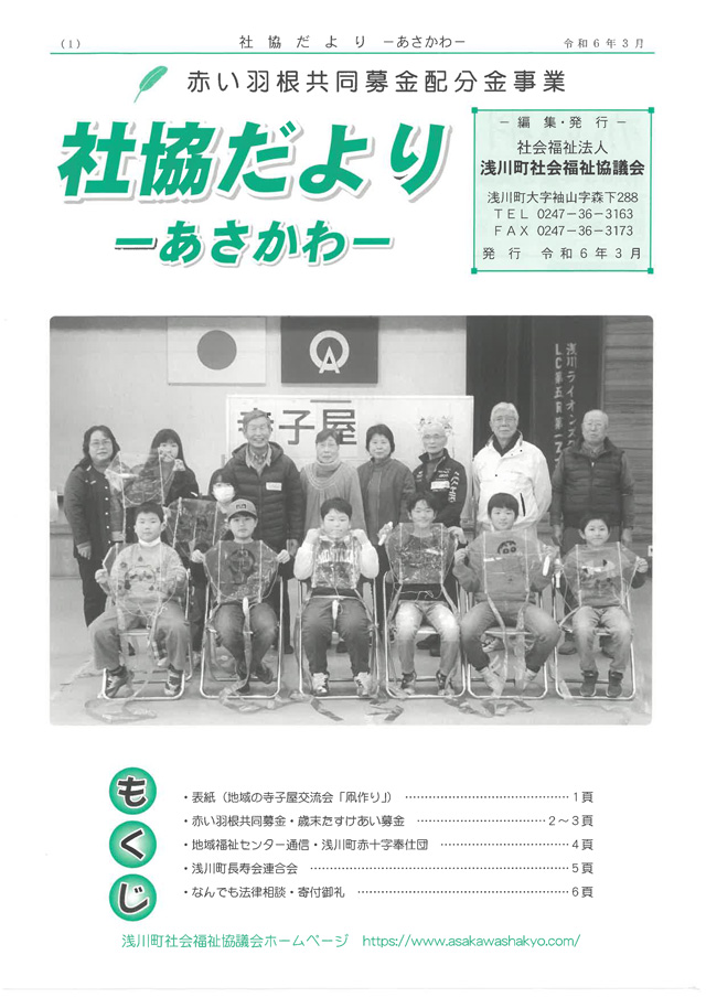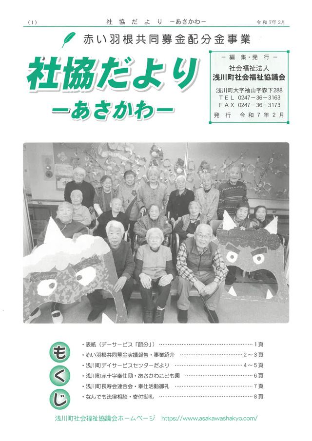 この度は、社会福祉法人 浅川町社会福祉協議会のホームページをご覧いただき誠に有難うございます。当法人は福島県浅川町にて社会福祉事業を行っております。